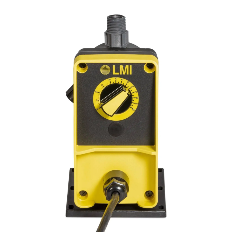 C771-25T LMI Metering Pump – C Series Chemical Metering Pumps, 10 G.P.H (Gallons Per Hour) @ 80, Pulse Input with Dual Manual Speed and Stroke Length Control, Polypropylene, Ceramic Valve Balls, PTFE O-Ring, (PE) Polyethylene Tubing .5″ Outside Diameter (OD) Connection, 115 Volts, 50 Hz / 60 Hz